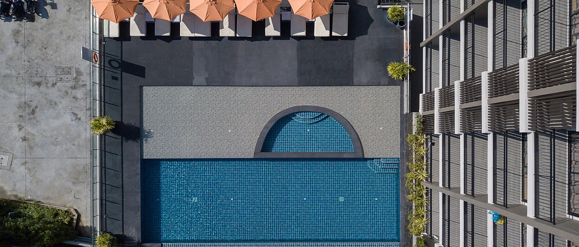 Relax with the outdoor swimming pool on the mezzanine floor. Guests can sunbathe at the poolside bed. The pool has depths for children and adults.